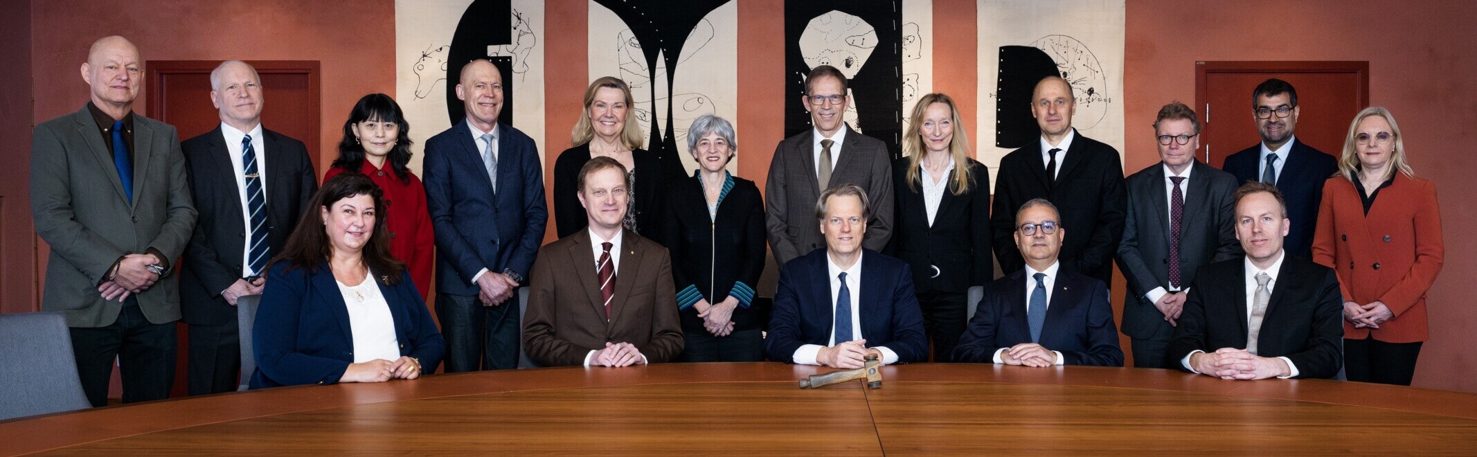 Standing from left: Pär Nordlund, Randall Johnson, Qiang Pan-Hammarström, Christer Betsholtz, Anna Wedell, Juleen Zierath, Thomas Perlmann, Birgitta Henriques Normark, András Simon, Janne Johansson, Gonçalo Castelo-Branco and Gunilla Karlsson Hedestam.
